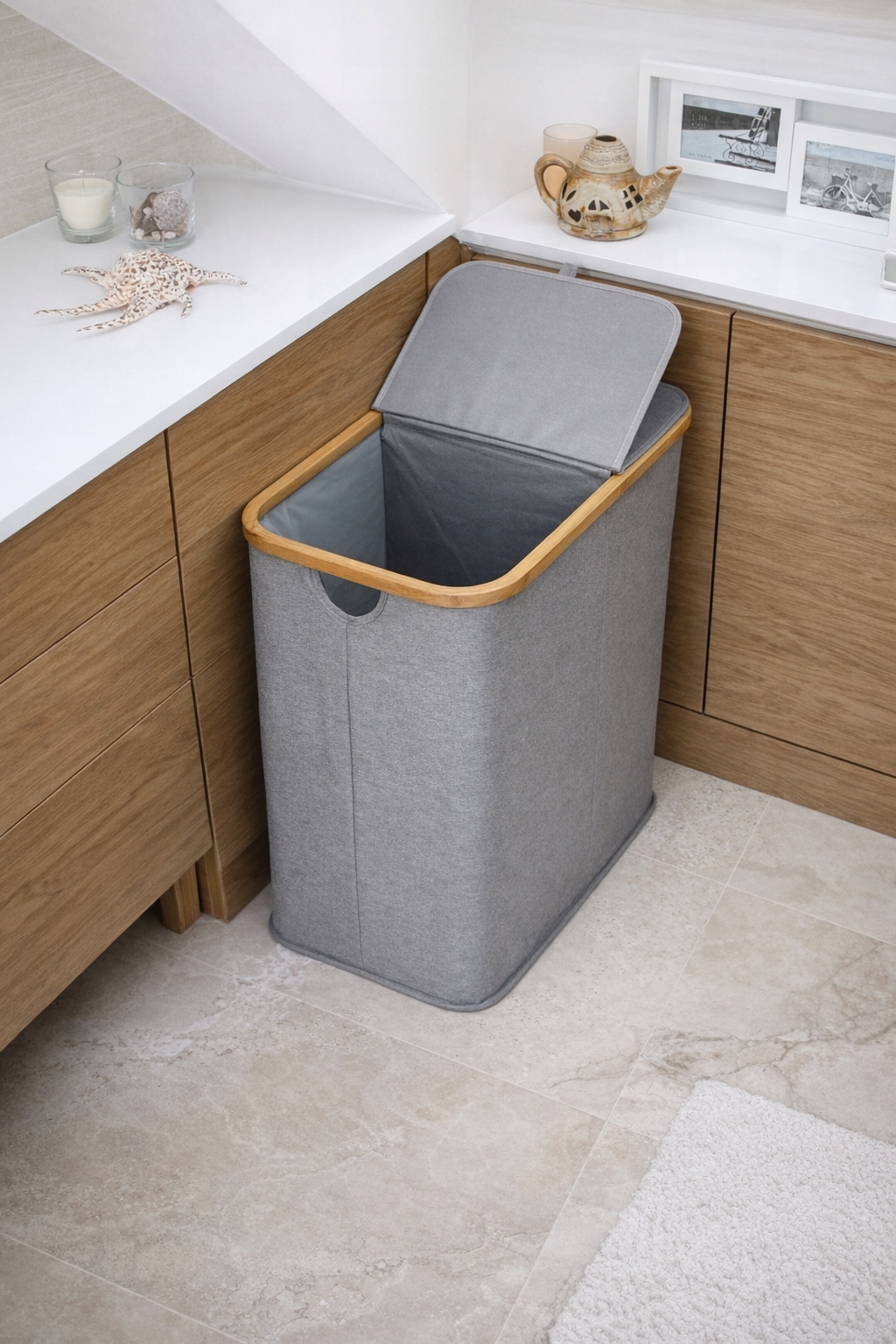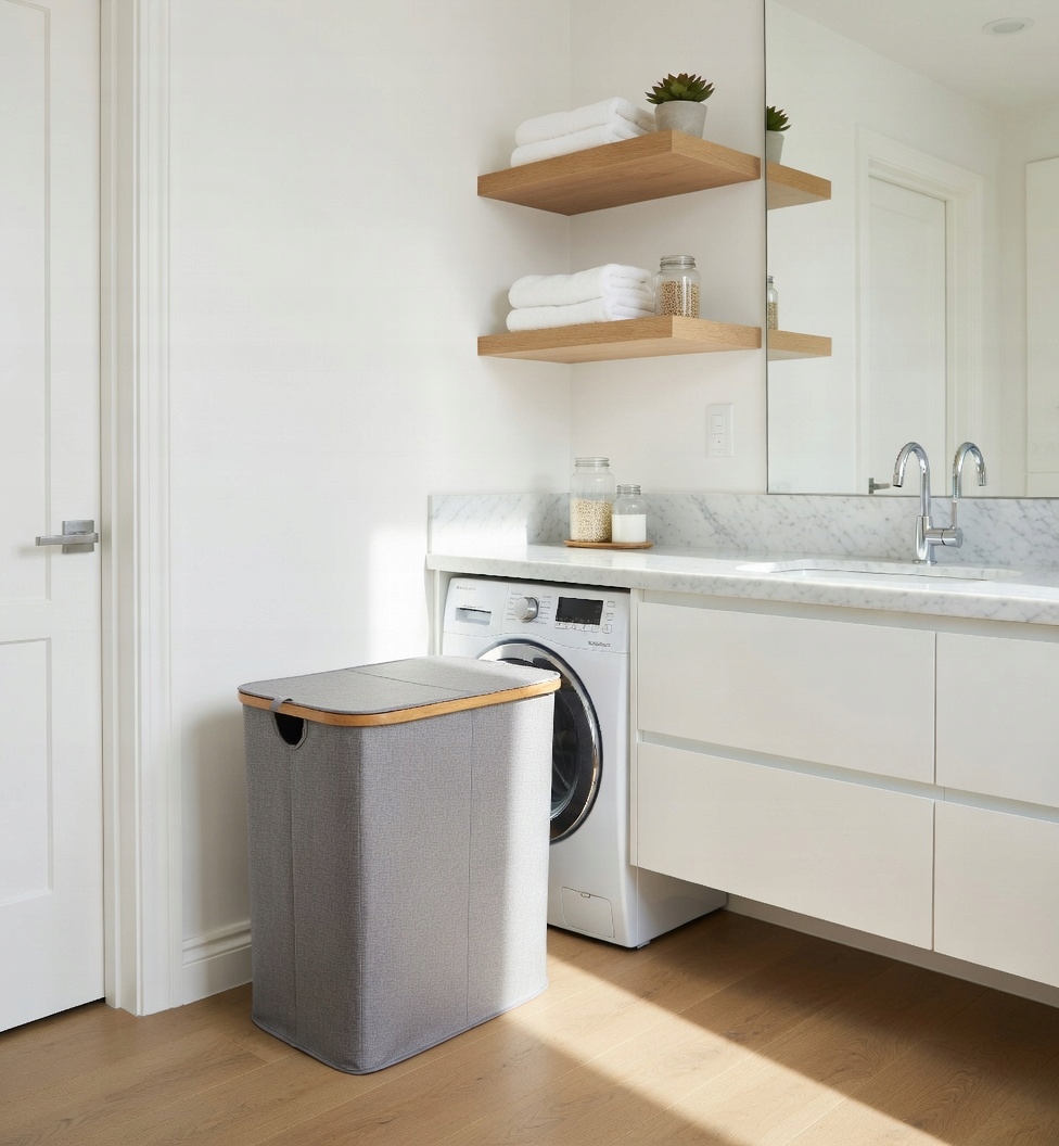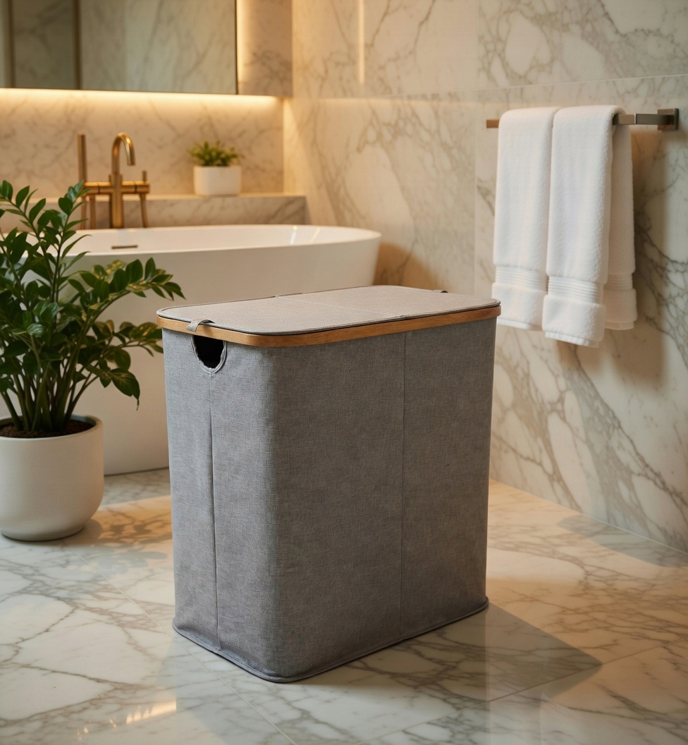 ✅Praktyczny kosz na pranie z elementami bambusa.
