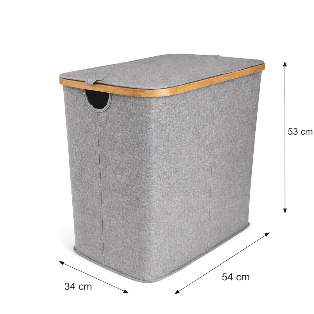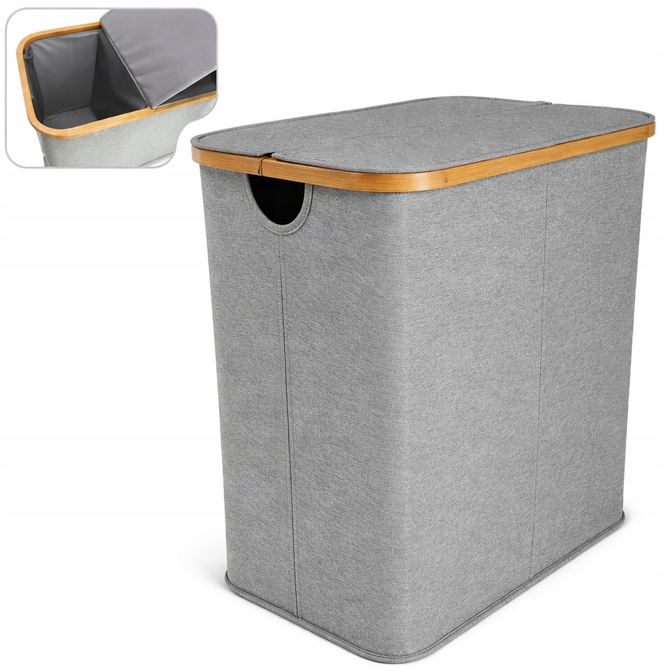 KOSZ NA PRANIE BIELIZNĘ POJEMNIK 54X34X53 CM 100 L Bambus SZARY