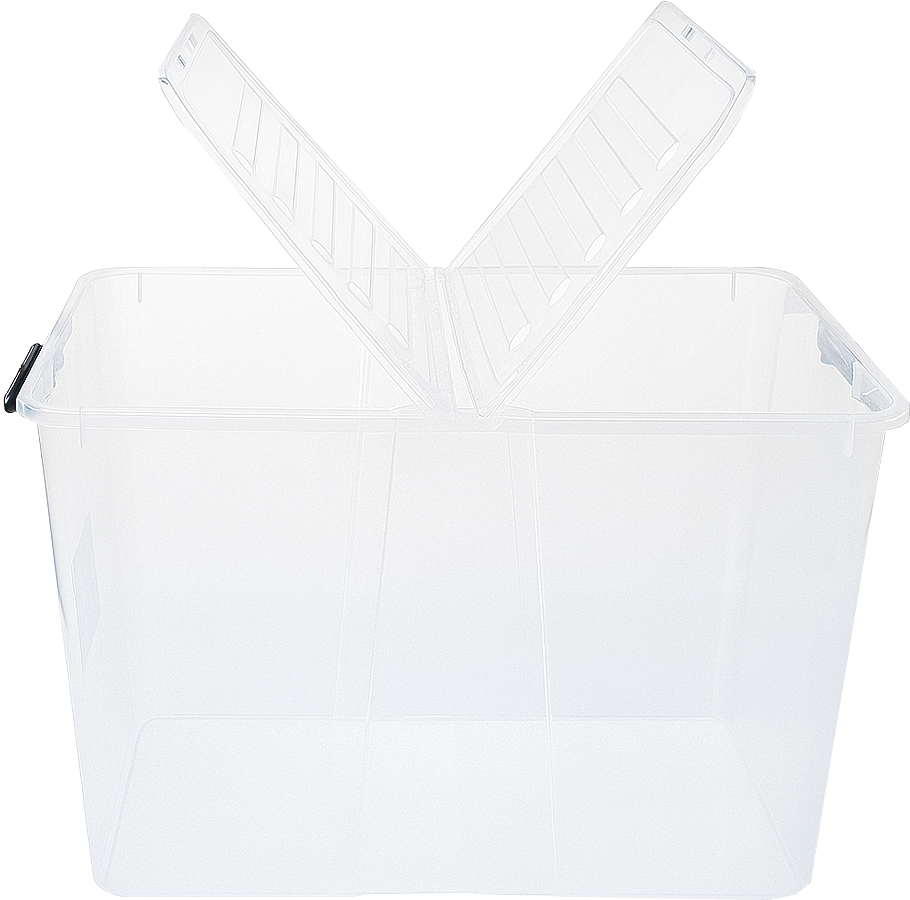 POJEMNIK PUDEŁKO PUDŁO ORGANIZER PLASTIKOWY PRZEZROCZYSTY Z PODWÓJNĄ UCHYLNĄ POKRYWĄ 65 L