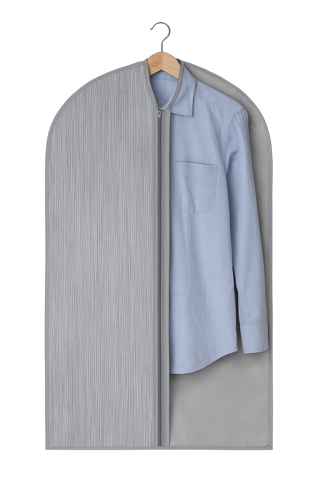 Pokrowiec na ubrania 100×60 cm, szary półprzezroczysty – zamek i otwór na wieszak | do garnituru i sukienki