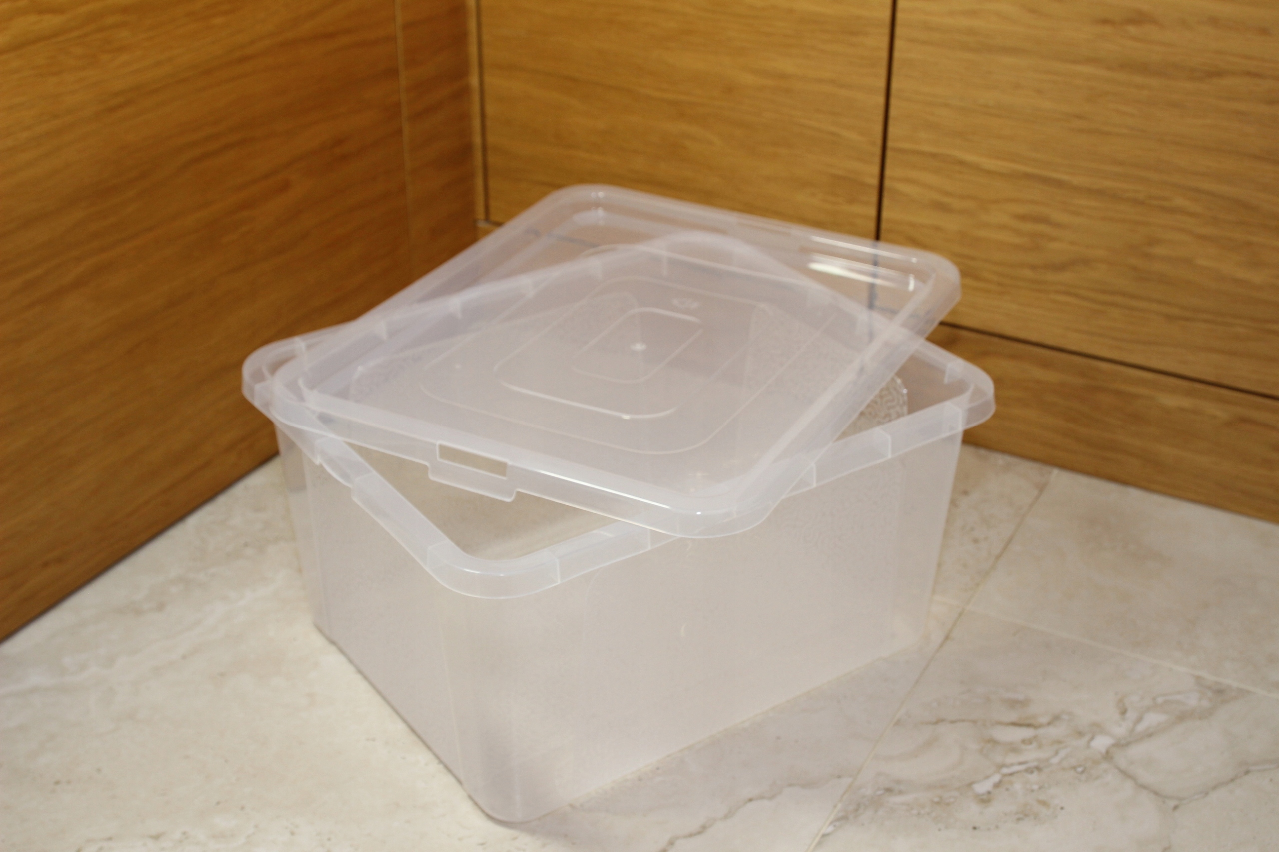 Zestaw pojemników z pokrywą – plastikowe, różne rozmiary, bezbarwne | do przechowywania w domu i garażu